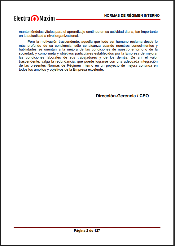 Por eso, hoy quiero compartir con nuestros clientes, colaboradores y equipo técnico un fragmento fundamental de nuestras Normas de Régimen Interno. Este documento no es solo un conjunto de reglas; es nuestra declaración de principios, el motor que nos permite afrontar proyectos de gran envergadura con la agilidad de un equipo unido y profesional.